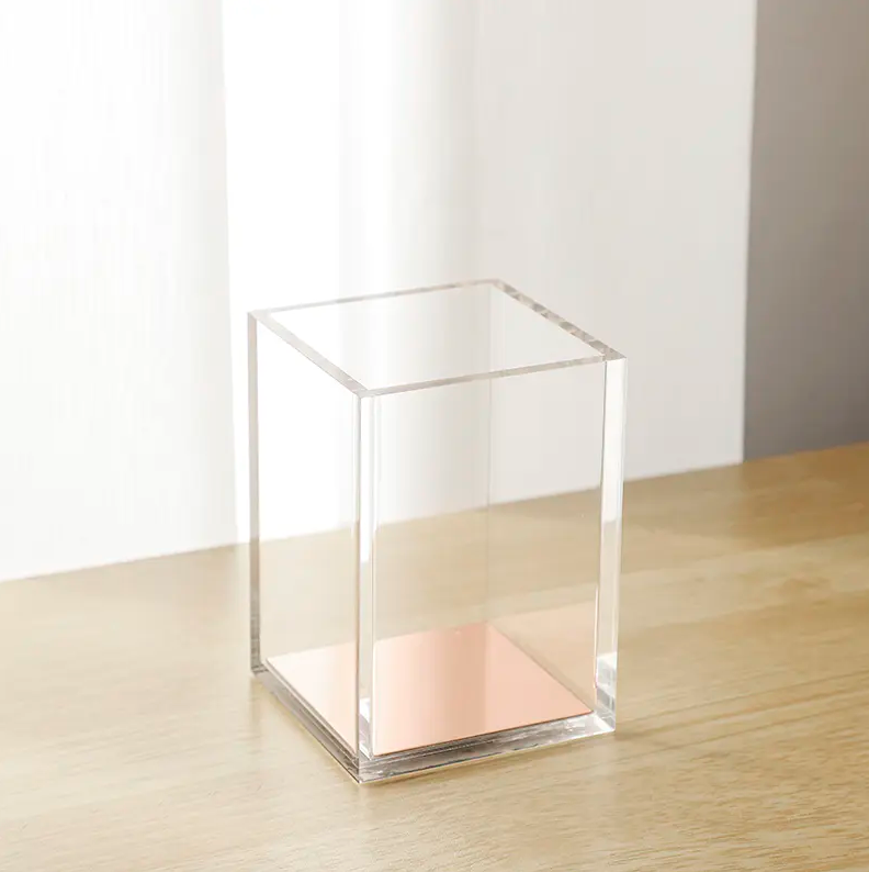 El acrílico es one of the most workable materials for desk accessory manufacturing. It can be cut, bent, laser-engraved, and bonded into a wide range of shapes and configurations. This makes acrylic penholders highly customizable for both commercial and personal use.